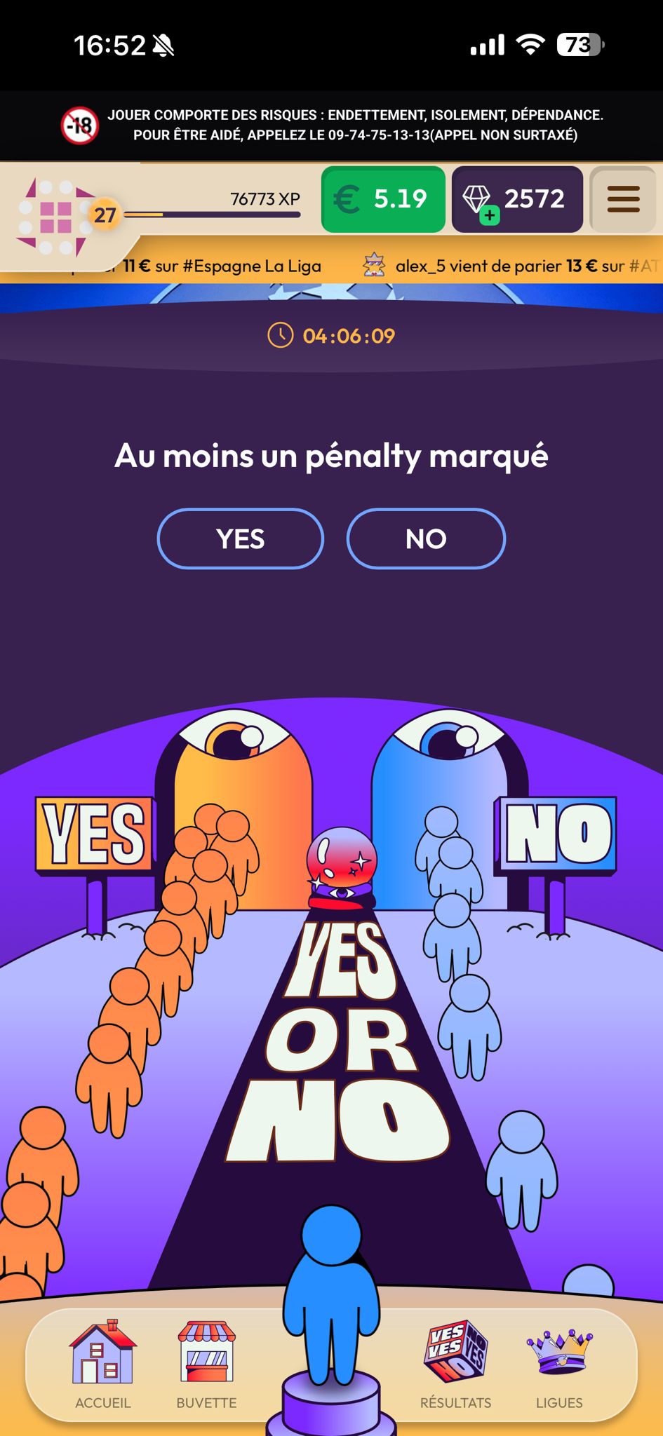 C’est cette dimension communautaire qui définit YESorNO, en plus d’être la seule offre de paris sportifs mutuels en France, ce qui signifie que les joueurs jouent les uns contre les autres, et pas contre nous.